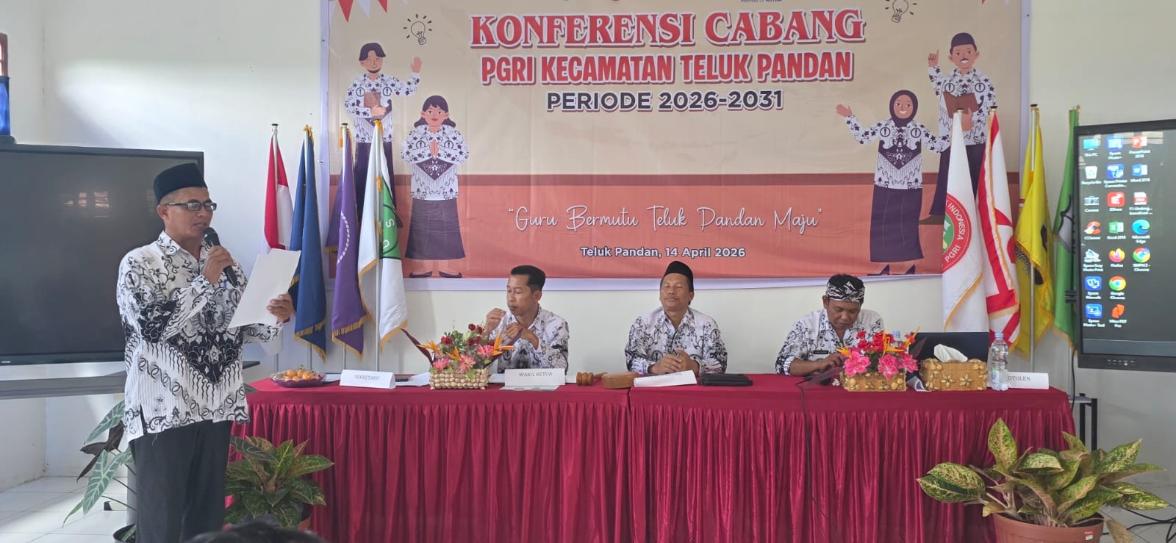 TELUK PANDAN – Semangat transformasi pendidikan menggaung di aula SMPN 1 Teluk Pandan hari ini, Selasa (14/4/2026). Persatuan Guru Republik Indonesia (PGRI) Cabang Teluk Pandan sukses mengadakan Konferensi Cabang (Koncab) untuk menentukan arah organisasi selama lima tahun ke depan.