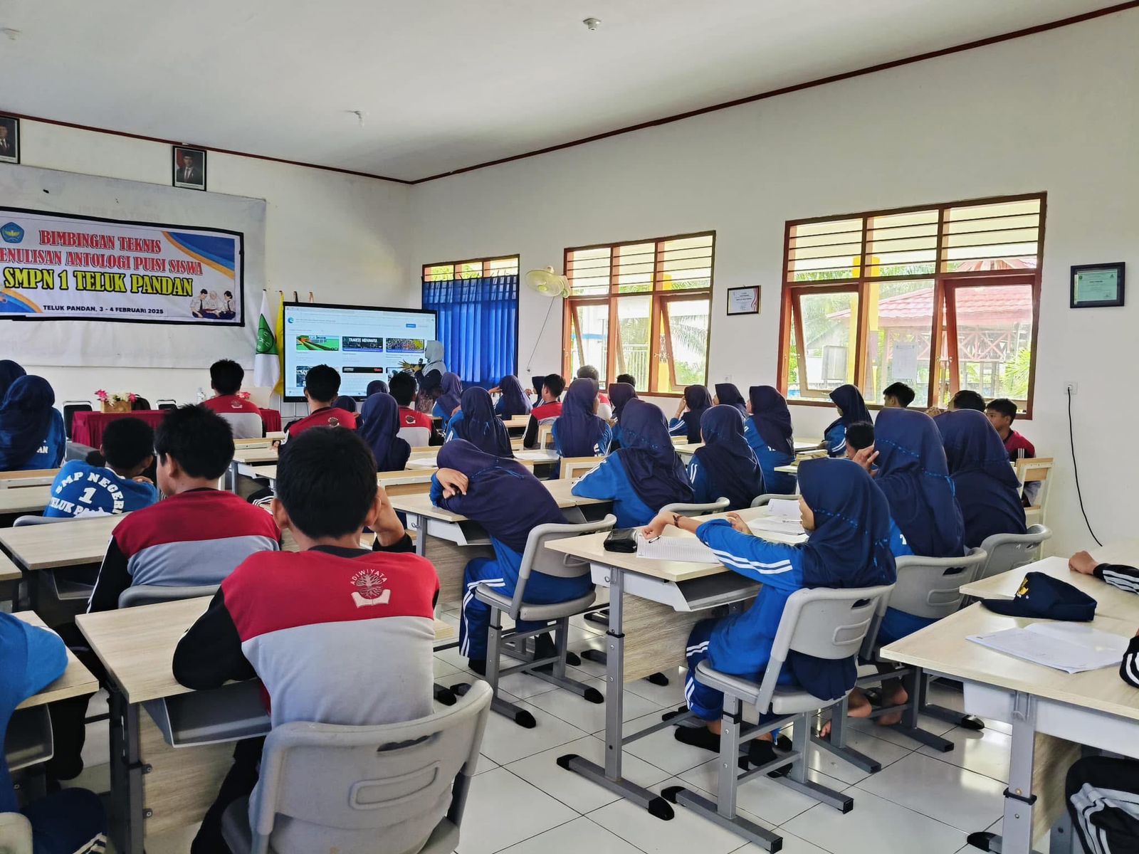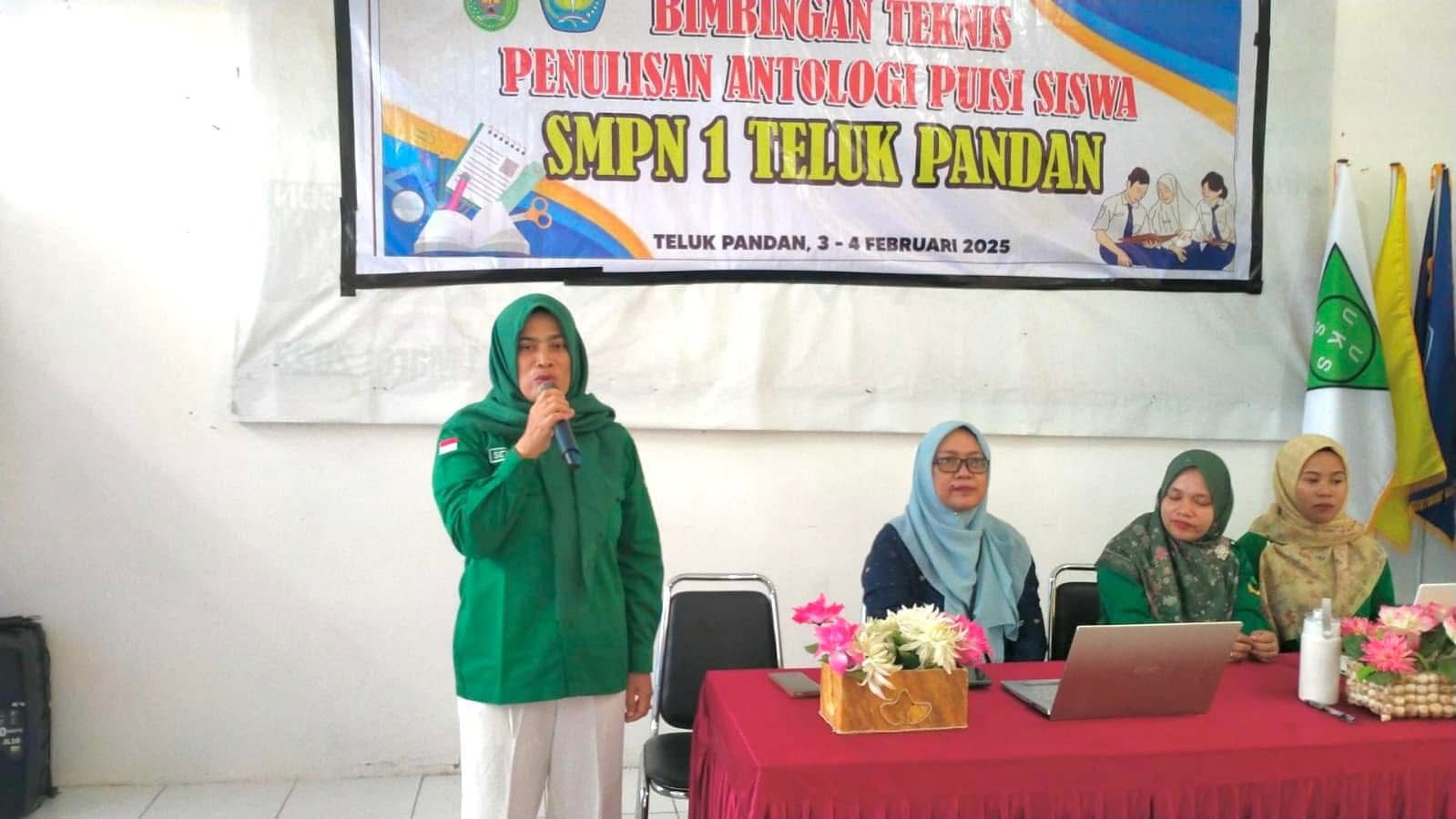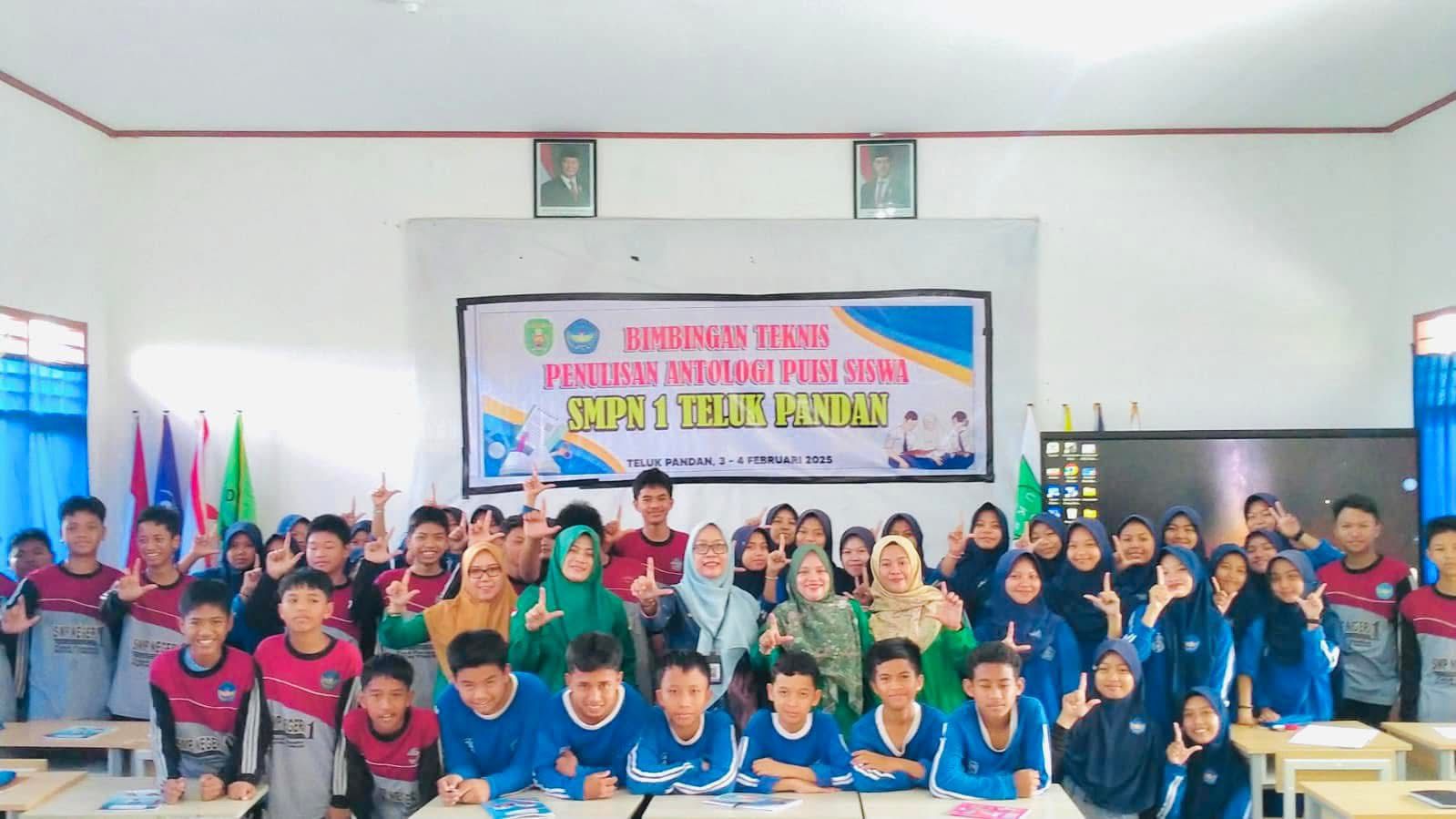 SMP Negeri 1 Teluk Pandan sukses menyelenggarakan Bimbingan Teknis (Bimtek) Penulisan Antologi Puisi selama tiga hari, pada tanggal 3–5 Februari 2025. Kegiatan ini menghadirkan narasumber Ibu Misriani, M.Pd. (Widyabasa Ahli Pertama Provinsi Kalimantan Timur)
